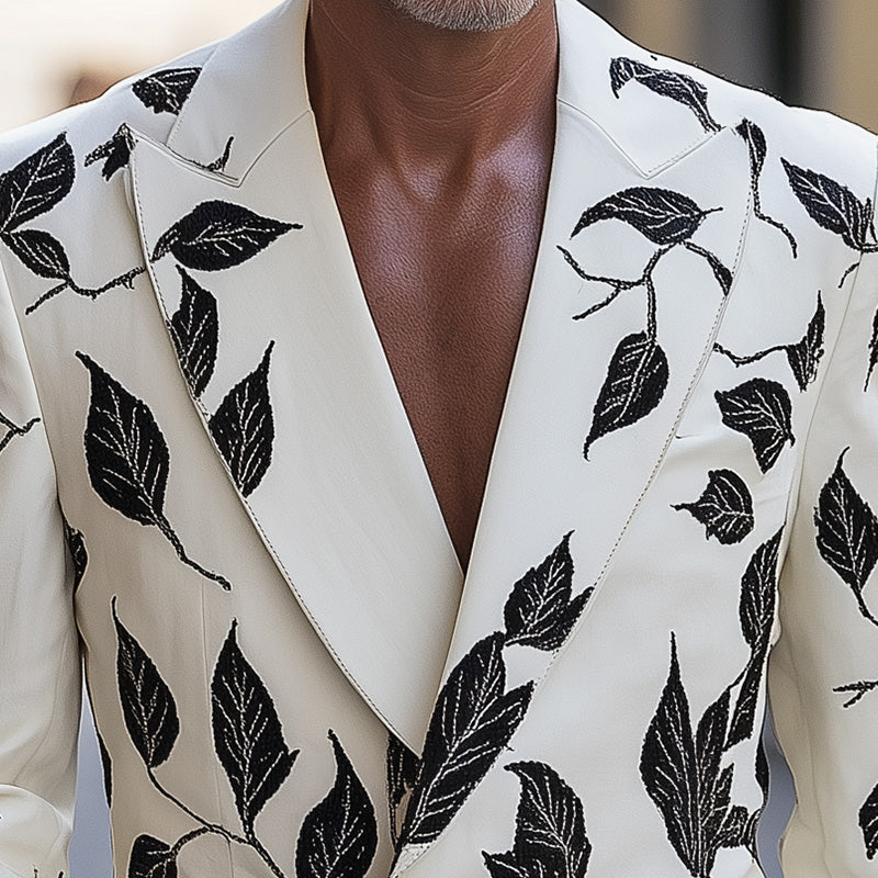 This printed suit jacket pairs exceptionally well with a crisp white shirt and tailored trousers for a refined look, suitable for both business and casual events. For a more laid-back style, wear it over a basic tee with jeans. Add loafers or clean sneakers to complete the ensemble.