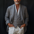 This light linen suit jacket can be effortlessly paired with a crisp white shirt and light trousers for a sophisticated daytime look. For a more casual ensemble, match it with a t-shirt and jeans or chinos. Add some loafers or sneakers to complete your style. Accessories like a pocket square or a watch will further enhance the outfit, making it suitable for both business casual and social gatherings.