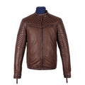 Want to look like a party celeb? The most suitable option is our Men's Tawton Brown Leather Jacket with Quilted Panels. This chic jacket includes a zip-up closure, a snap collar, open hem zipped cuffs, one interior pocket, and two exterior functional pockets.