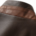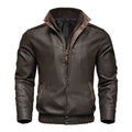 Men's Vintage Double Collar Leather Long Sleeve Zip Fly Bomber Jacket 26675178M