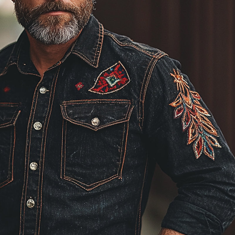 Embrace timeless style with the Men's Vintage Embroidered Long Sleeve Denim Shirt . Its unique design, durable material, and versatile appeal make it a must-have for anyone looking to elevate their wardrobe with a touch of classic elegance.