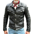 Men's Vintage Leather Lapel Chest Pocket Single Breasted Casual Jacket