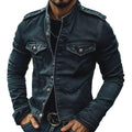 Description:Elevate your style with our Men's Vintage Stand Collar Denim Jacket, a timeless wardrobe staple that combines durability with classic aesthetics. Perfect for layering or as a standalone piece, this jacket is designed for comfort and versatility.