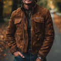 Elevate your style with this timeless Men's Vintage Suede Stand Collar Zip-Up Jacket. Crafted for both comfort and fashion, this jacket is an ideal addition to any modern wardrobe.