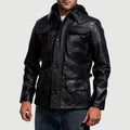 Moulder Hooded Black Leather Jacket