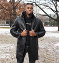 Want to know what menswear trend will get the most attention? We're confident that our fashionable Ralph's Black shearling Long coat will be just what you've been looking for to complete your look. This shearling long coat consists of a central zipper under the button placket, snap button collar, and open hem cuffs making this jacket exceptional. Having one pocket inside, and two functional pockets outside, this long coat keeps your hands toasty.
