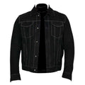 Make your style attractive with the River Black trucker suede Jacket—a perfect fusion of rugged suede and sleek leather. Crafted for those who dare to stand out, this jacket features a distinctive design that effortlessly blends the classic appeal of suede with the luxurious feel of premium leather. The external side of this jacket is manufactured with full-grain leather material. On the internal side of this jacket, there is a lining of smooth and soft satin polyester that keeps you warm and comfortable the entire time. There is a buttons attached to the front of this jacket for the closure. There are open-hem cuffs on full-length style sleeves.