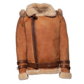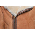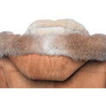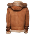 Rocco Vintage Cognac Aviator bomber shearling jacket with Fox trim hoodie
