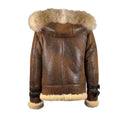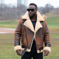 Rocco Vintage Distressed Brown Aviator bomber shearling jacket with hoodie