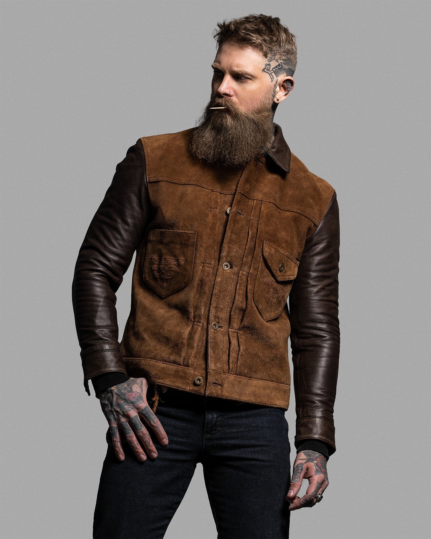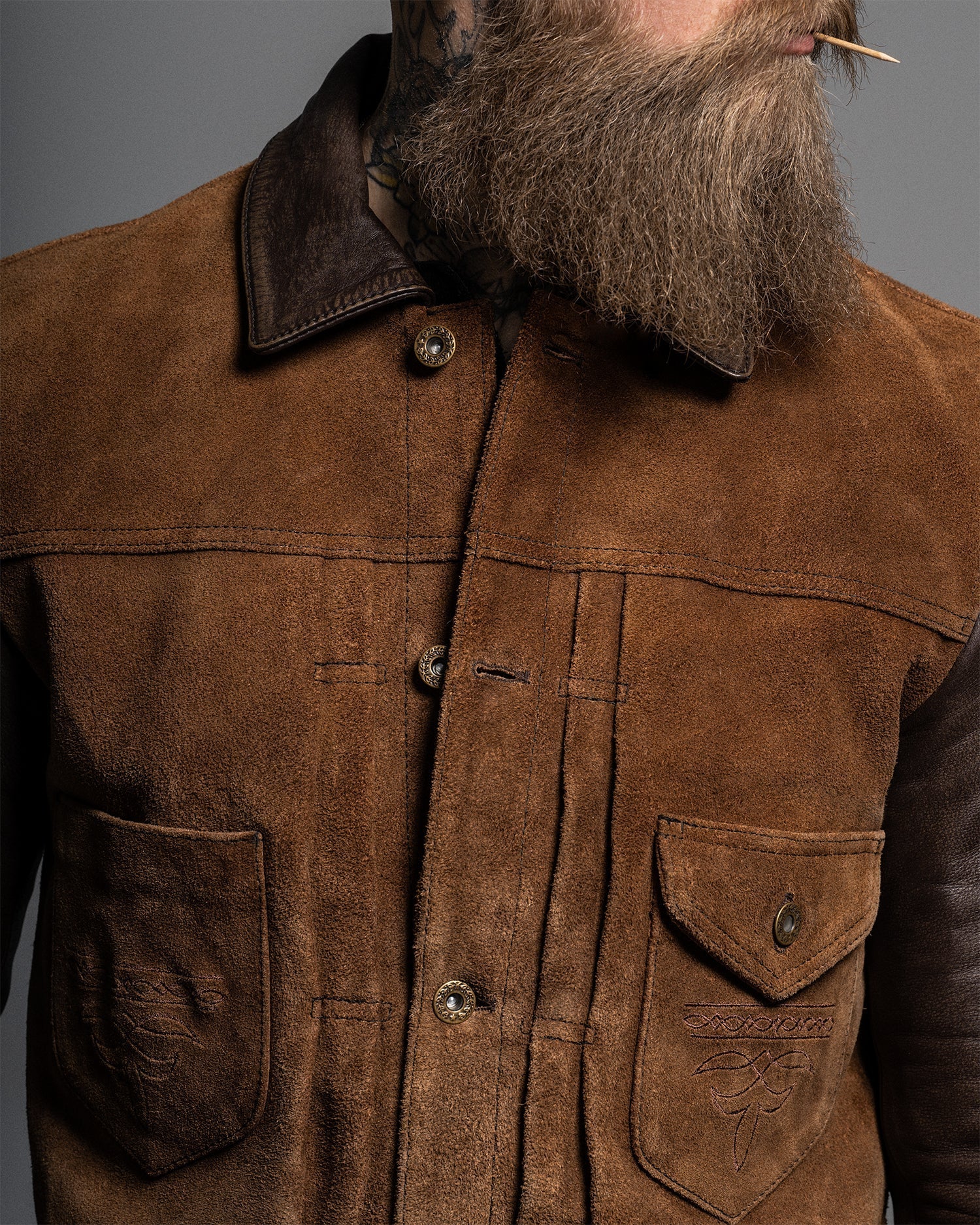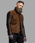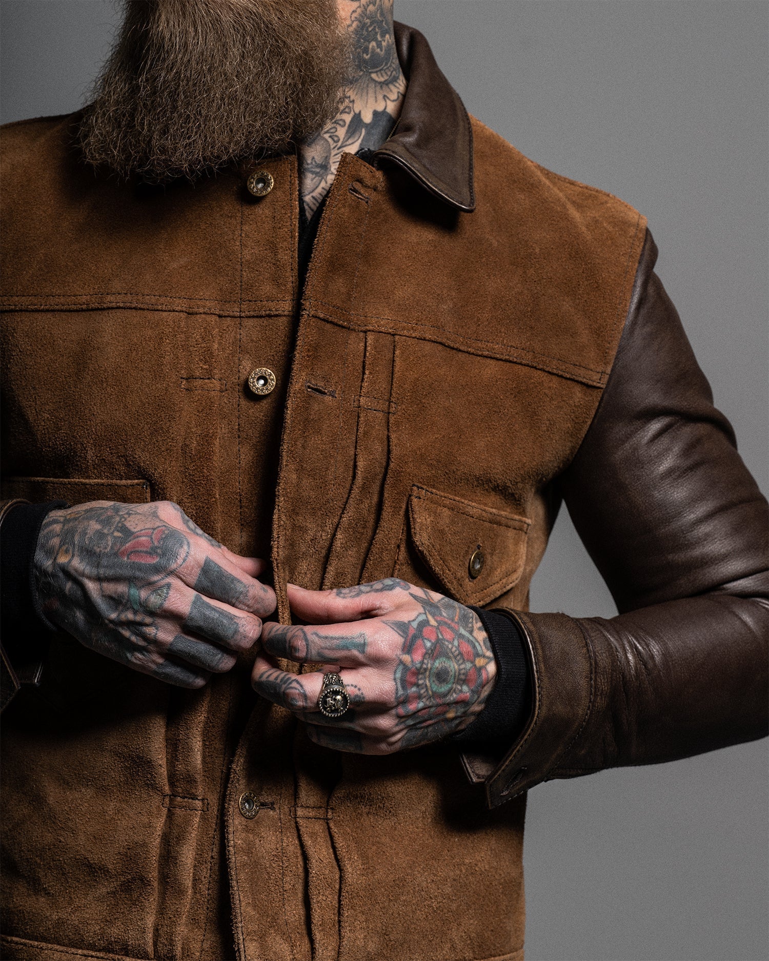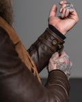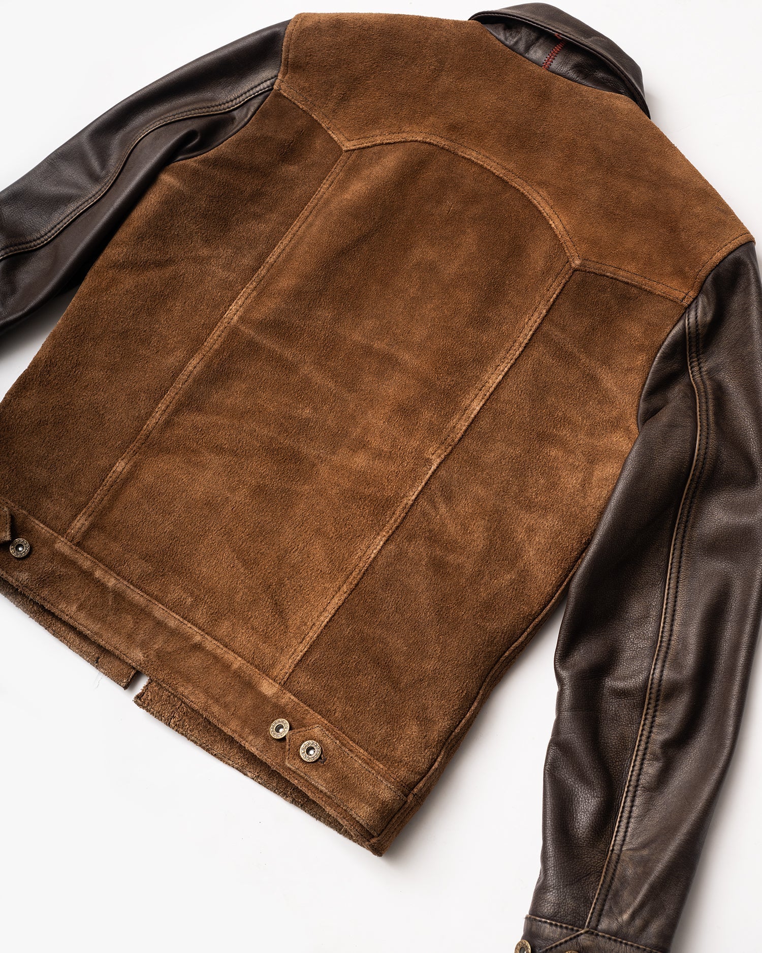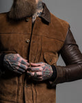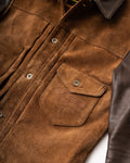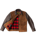 Crafted from oil-waxed roughout cowhide for the body and smooth waxed cowhide for the sleeves and collar, the Scoundrel blends two complementary textures into one cohesive statement. The roughout hides are treated with a proprietary hand-waxed finish, designed to draw out depth in the nap while adding water resistance and durability—without compromising breathability. As the jacket wears in, the contrast between the body and sleeves will deepen, with each panel aging at its own pace for a dynamic, lived-in look.