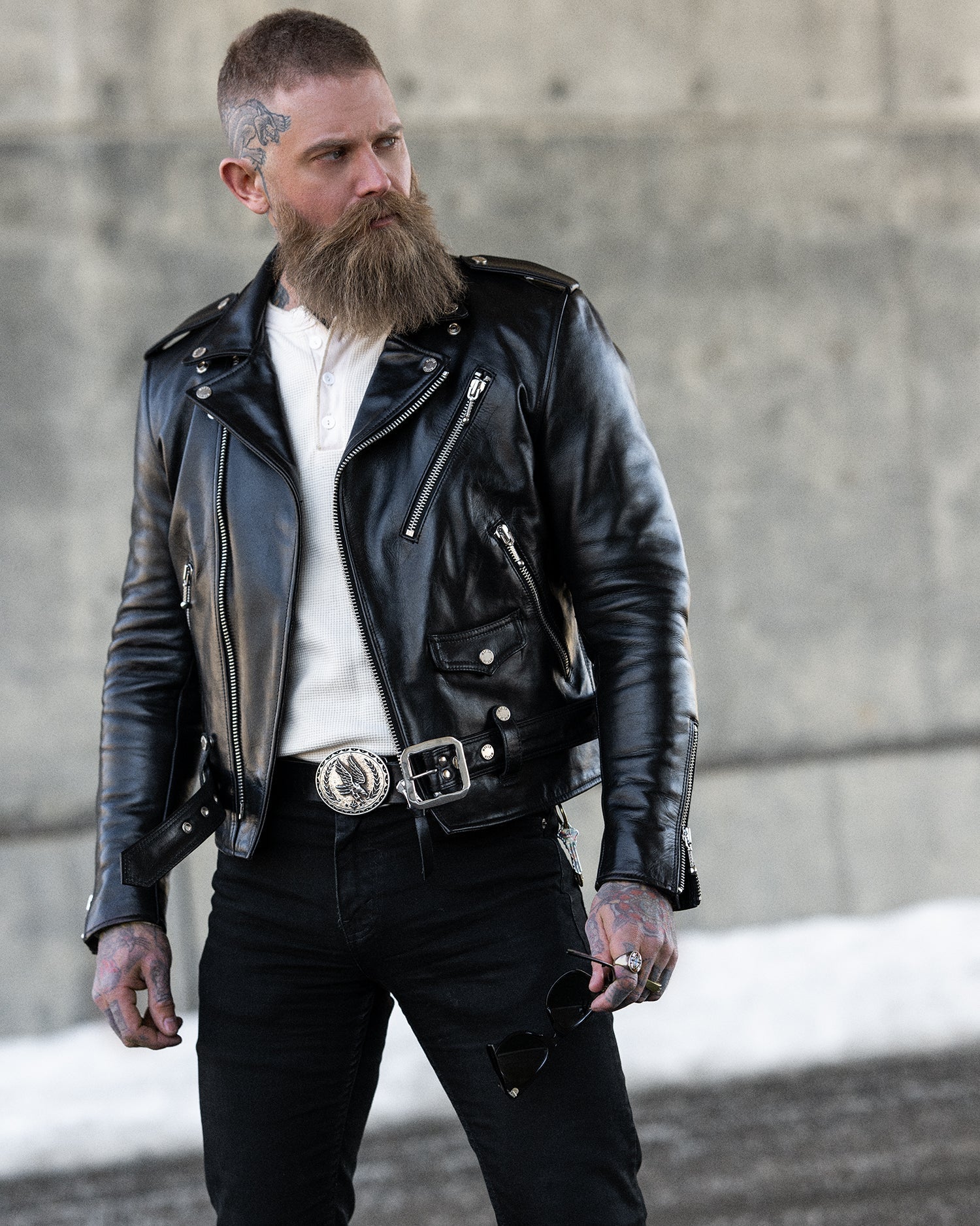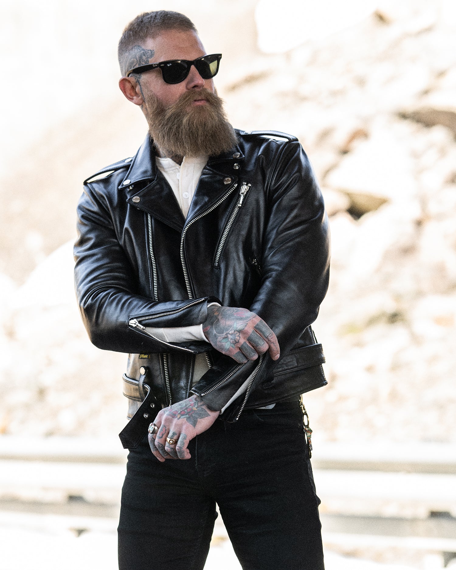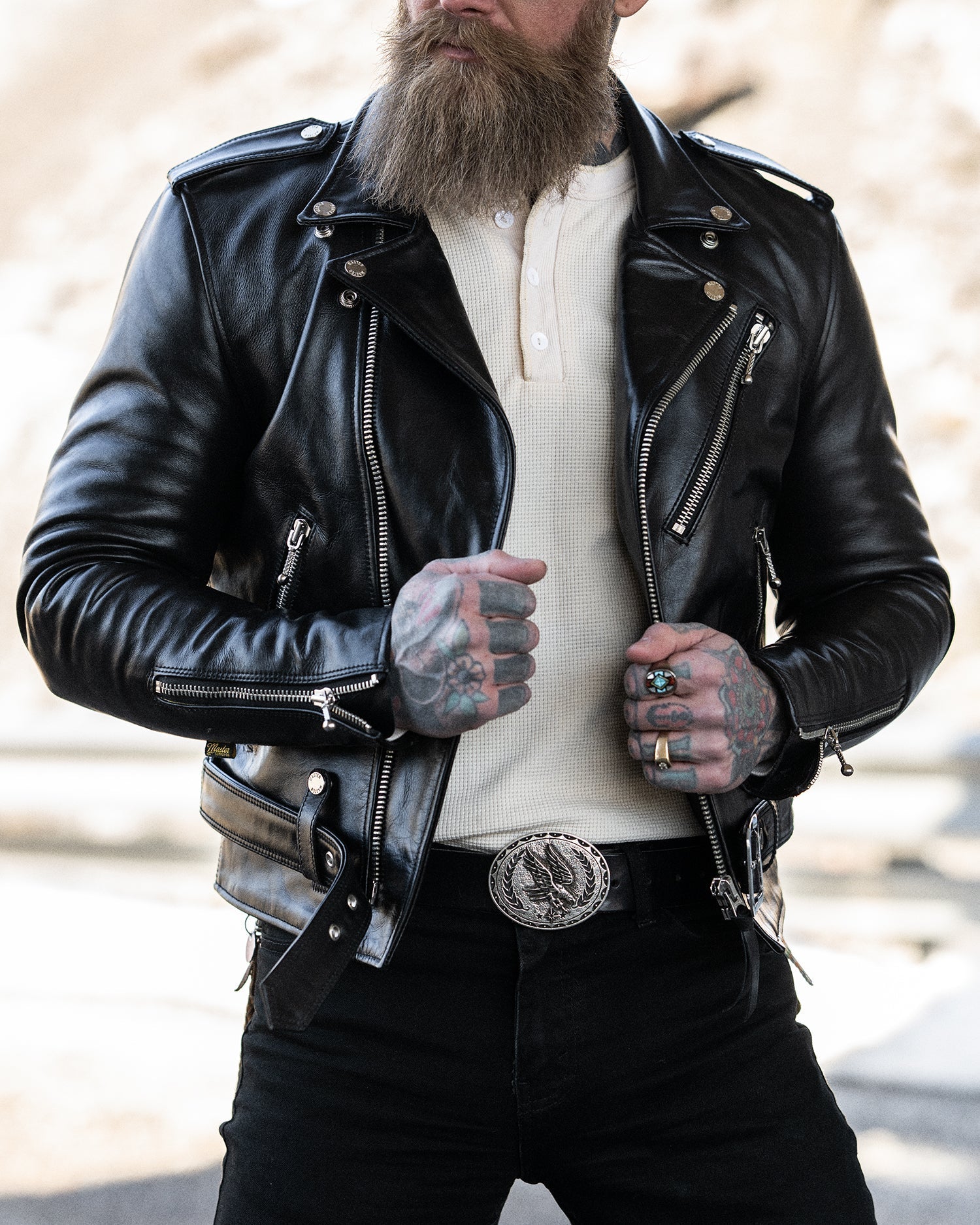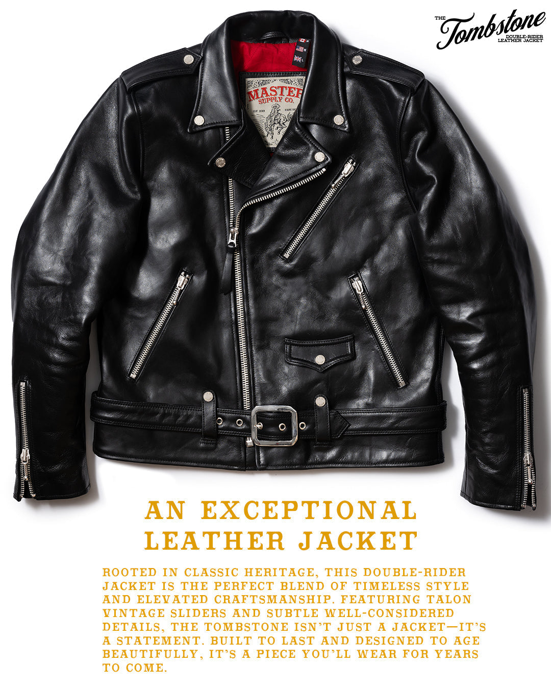 Introducing The Tombstone, our refined take on the classic double rider jacket, now enhanced with authentic Talon vintage sliders—a hallmark of quality since 1893.