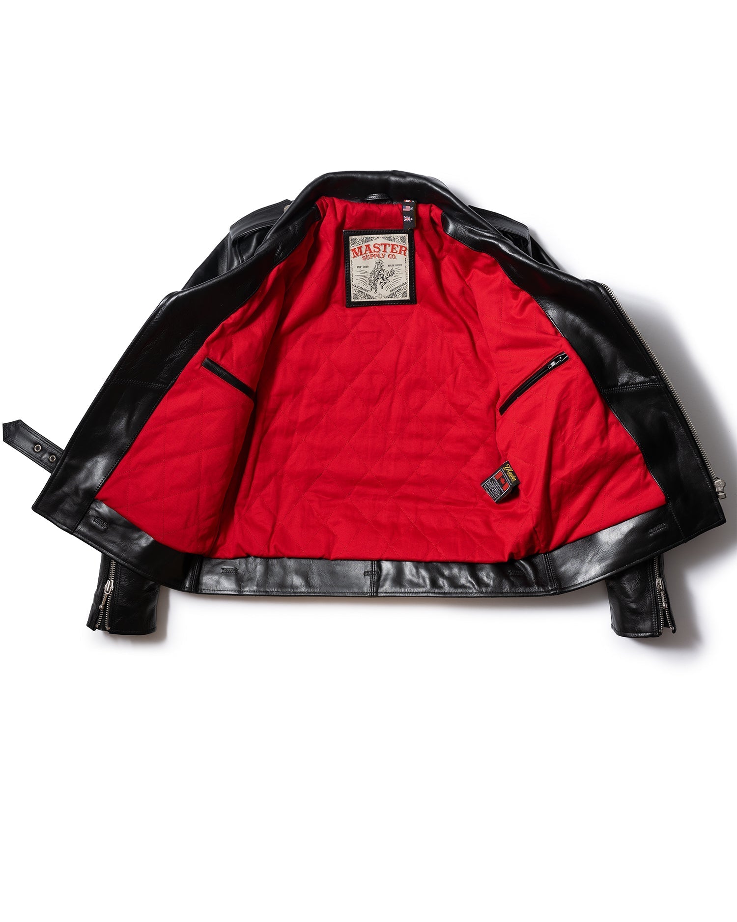 Equipped with vintage Talon 10mm (main) and 8mm (accent) silver sliders, renowned for their smooth operation and enduring reliability. The interior is lined with 100% cotton red twill reinforced with quilted stitching, offering two interior breast pockets—one zippered, one open—for secure storage.