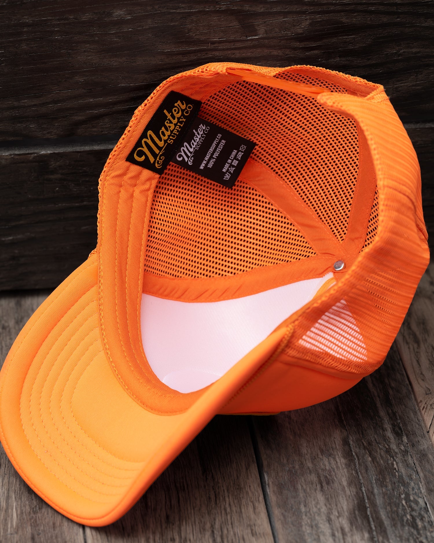 This hat isn't just plain orange, it's Hunter Orange! Not to mention the use of foam throughout this hat, you'll definitely feel the difference it makes. Most of all, we love to use our ultra signature "Holy Buck, Boys!" patch. Everything about this trucker cap just feels perfect for us.
