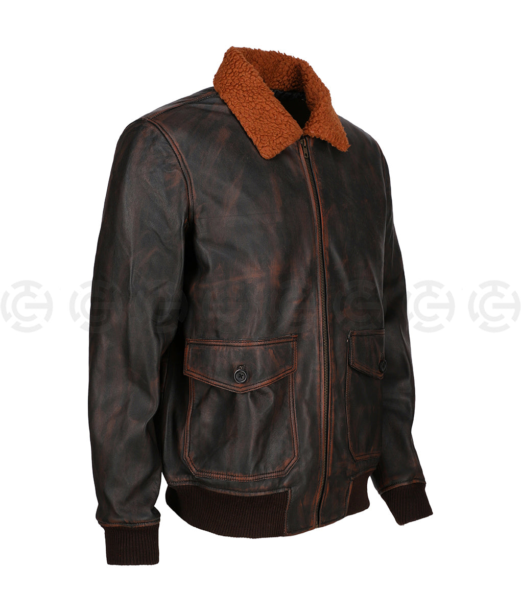 Take flight in fashion that’s built on legacy — the U.S. Navy G-1 leather bomber jacket is your shot at military-inspired modern fashion. Like the classic U.S Navy outfits, this carries a rich military heritage. Sport thisto turn heads, look confident, and leave people in awe of your style. Walk into the league of the elite with a G1 bomber jacket made from real leather. This leather bomber jacket is admired by the leather-loving cult, always on the hunt for aesthetic pieces in durable material. The distressed brown finish adds a bold, lived-in character to this shearling leather jacket, making you look cool in it. Durable, breathable, and built to take on real-life challenges, it means business. Layer this sheepskin bomber jacket on casual days, or when meeting VIPs or your crush, it will hold up like any solid branded piece.