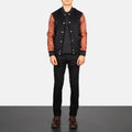 Vaxton Brown & Black Hybrid Varsity Jacket