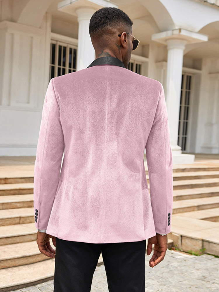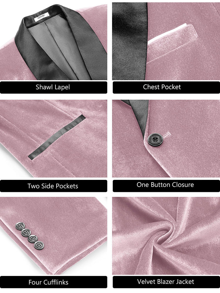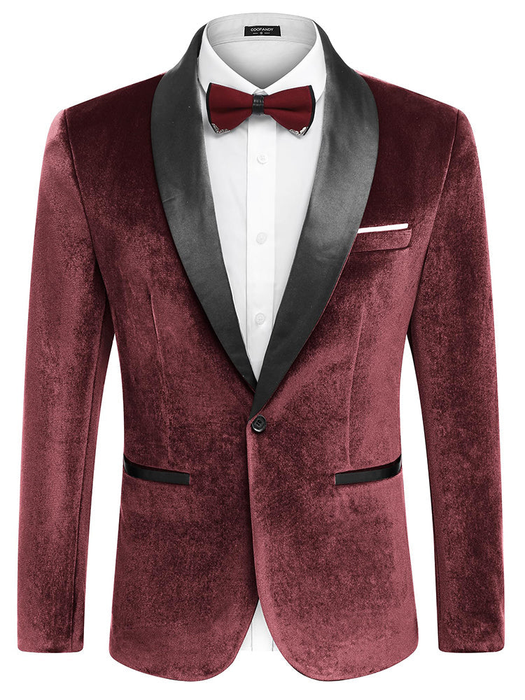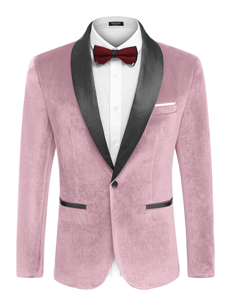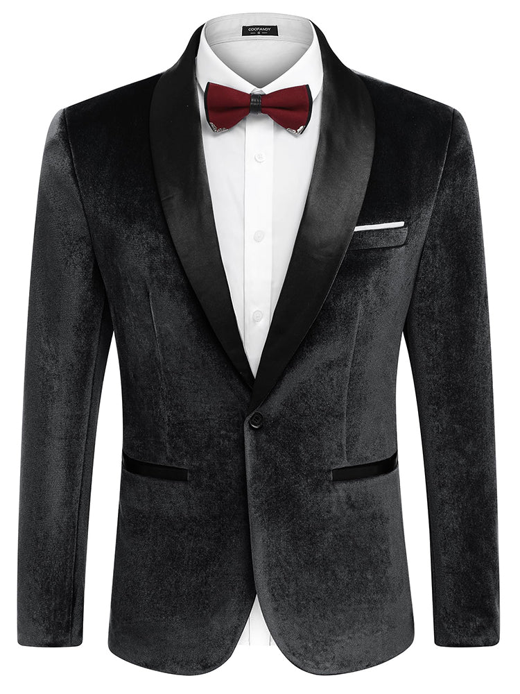 - Details: Featuring one-button single-breasted closure, black shawl collar, one breast pocket with white trim, two side pockets and one inner pocket.