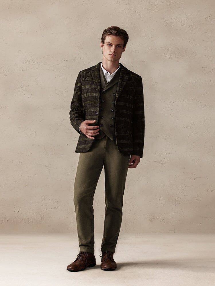 Vintage Plaid Wool Blend Blazer Jacket