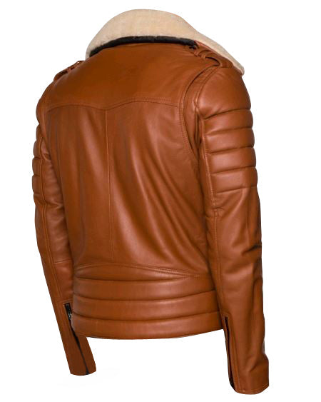 Seeking for an essential piece of outerwear? Our Woodwards English Tan Biker Jacket with Fur collar is one ideal jacket that is necessary to get in the winter for leisure adventures. The brown colour and genuine sheep fur lining on the collar of the jacket exude a refined air. It has a zipper closure with open hem zipped cuffs so that you’re fully covered. To keep your hands toasty, it has three zipper pockets outside and one pocket inside.
